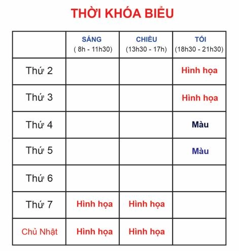 Lưu ý: Dạy vẽ phải dạy từng người một nên hôm nào cũng là khai giảng